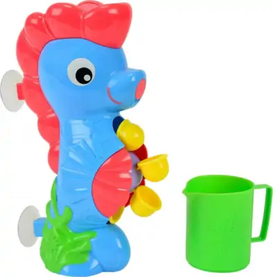 Denne nuttede søhest giver utallige timers leg i badet. Med sugekopperne kan du blot montere søhesten på klinkerne og med kanden, hælder du blot vand ned i hovedet på søhesten og ser hvordan vandet løber ned i vandmøllen.