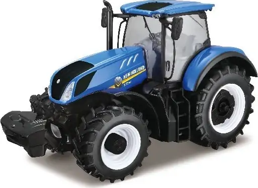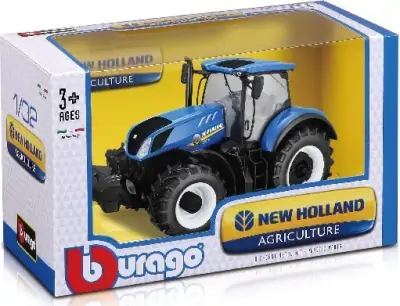 Denne fine traktor er i blå og er lavet i robust plastik og med dele i metal. Den har et størrelsesforhold på 1:32 i forhold til en virkelig New Holland traktor. Traktoren er motordreven. Bare giv den et skub og den triller afsted.