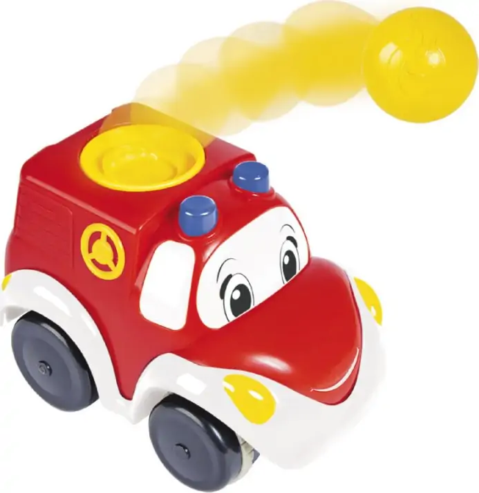 Med brandbilen medfølger der en bold, der skal sættes på bilens tag. Når du lægger bolden i tagets udforming, kan du trykke den ned, og brandbilen vil skyde bolden afsted!