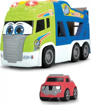 Med Dickie Toys Happy Scania Tim biltransporter kan du sjovt og nemt transportere biler fra et sted til et andet.