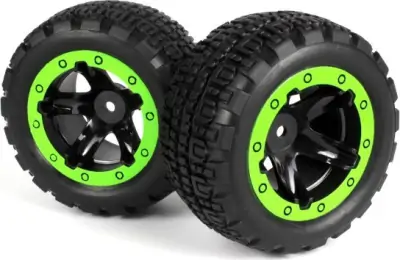 Slyder St Wheels/tires Assembled i farverne sort og grøn er designet til specifik brug med BlackZon Slyder-modellen.