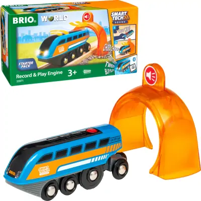 Få kontrol over legen med dette interaktive tog. Lokomotiv med lydoptager er et batteridrevet tog, som er fyldt med sjov teknologi og stærkt nok til at trække de tungeste læs. Brug den røde knap oven på toget til at optage dine ene lyde, og hør dem afspillet, når toget kører gennem lyd action tunnel.