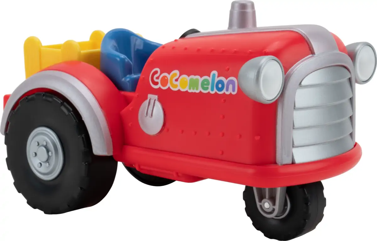 Du kan placere den venlige JJ-figur fra CoComelon YouTube-serien på sædet og sætte den flotte røde og frihjulet traktor i gang. Ved et tryk på traktorens motorhjelm kan du afspille melodier såsom “Old MacDonald”-sangen og andet spændende musik.