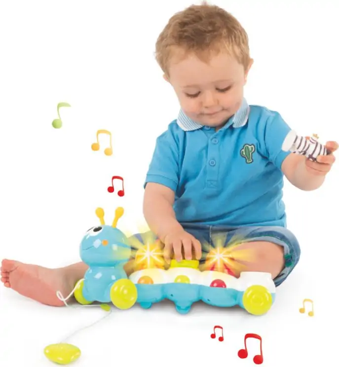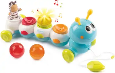 Lav dit eget lille optog med dette farverige tusindben fra Cotoons. Med sin plastiksnor kan tusindbenet trækkes med rundt på sjove og spændende eventyrer, mens den spiller glade melodier.
