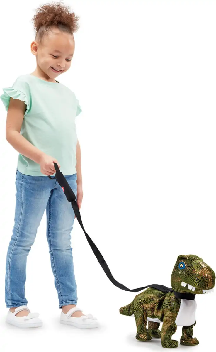 “Dance With Me” dinosauren er helt vild med at danse og kan slet ikke stå stille, når musikken begynder. På snoren er der en fjernbetjening, som du kan bruge til at styre dinosauren. Få ham til at gå fremad, logre med halen eller vrikke med kroppen!