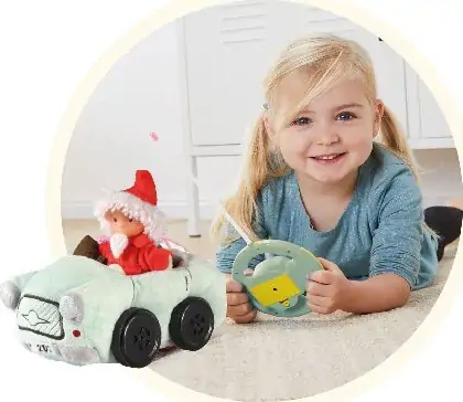 Nu kommer Sandmanden med en fjernstyret bil i plys for at sprede sandet fra hans drømme! For at folk skal kunne høre ham, lyder den kendte vuggevise ved at trykke på knappen på fjernstyringen og inviterer børn til at slappe af og drømme!