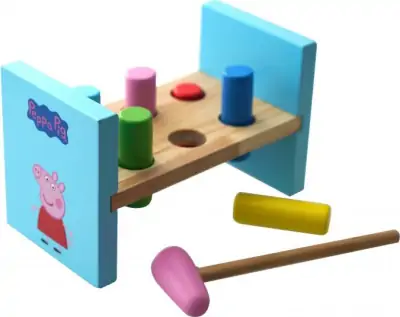 Dette sjove og farverige Gurli Gris hammerbræt i træ fremmer barnets evne til at vurdere afstand, dets hånd-øje koordinationen, farvegenkendelse og styrker motorikken. Børnenes smil og jubel er stor, når de har det sjovt med at banke de 6 farverige stave ned på plads.
