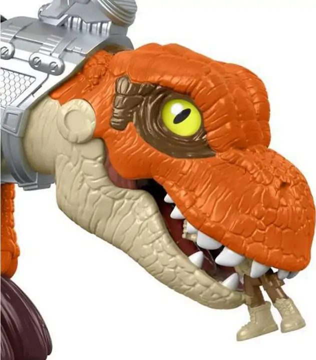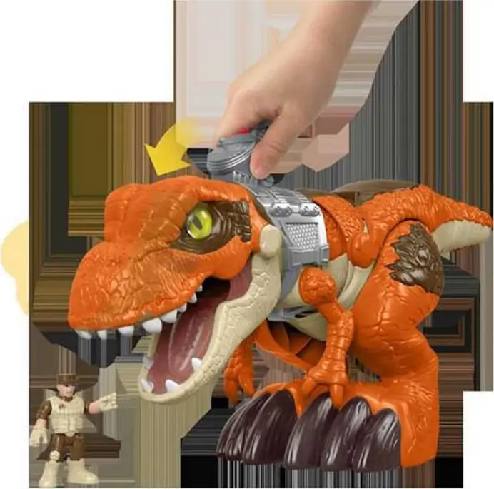 Børn kan styre dinosauren med et håndtag og få dinosauren til at springe ud, bide og sluge sit bytte helt.