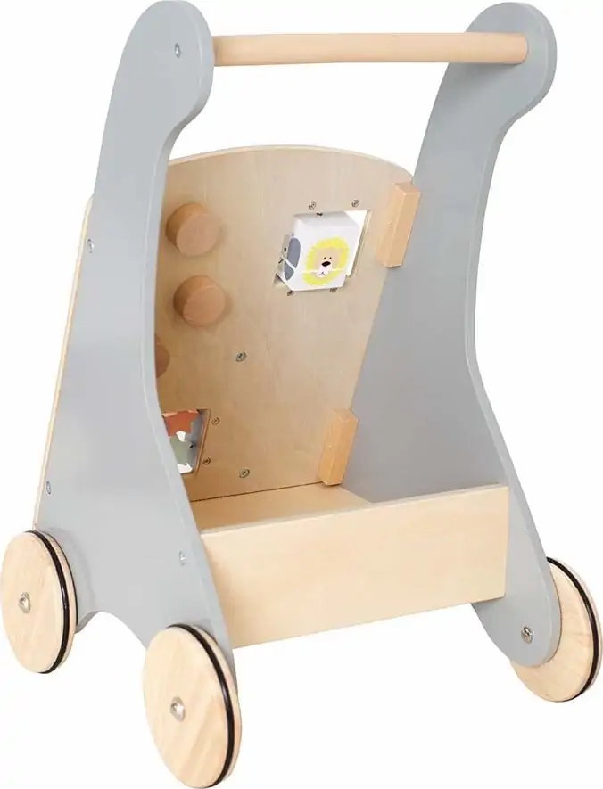 Gåvognen byder på mange aktiviteter såsom en kuglebane samt en firkantet blok, der har forskellige søde dyremotiver på. Derudover kommer gåvognen med tre drejelige tandjul samt 6 stjerner, der kan spindes rundt.
