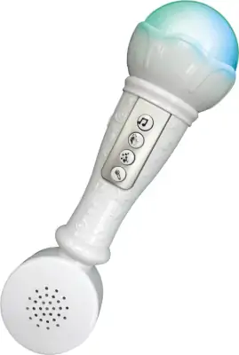 Mikrofonen er designet i hvid og blå og med små fine figurer. Den kan spille melodier og lave klapsalvelyde gennem den lille højtaler, der er placeret i bunden.