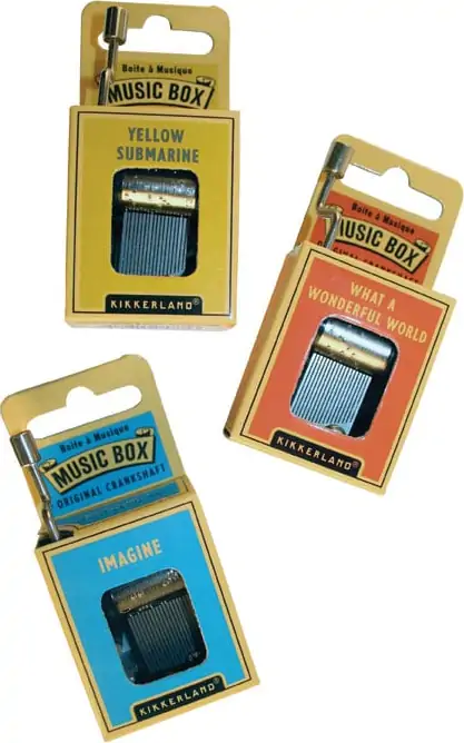 Når man drejer på håndtaget spiller den “Happy Birthday to you…” i præcis det tempo der drejes. Placerer man den på f.eks. et bord, lyder det højt og tydeligt.