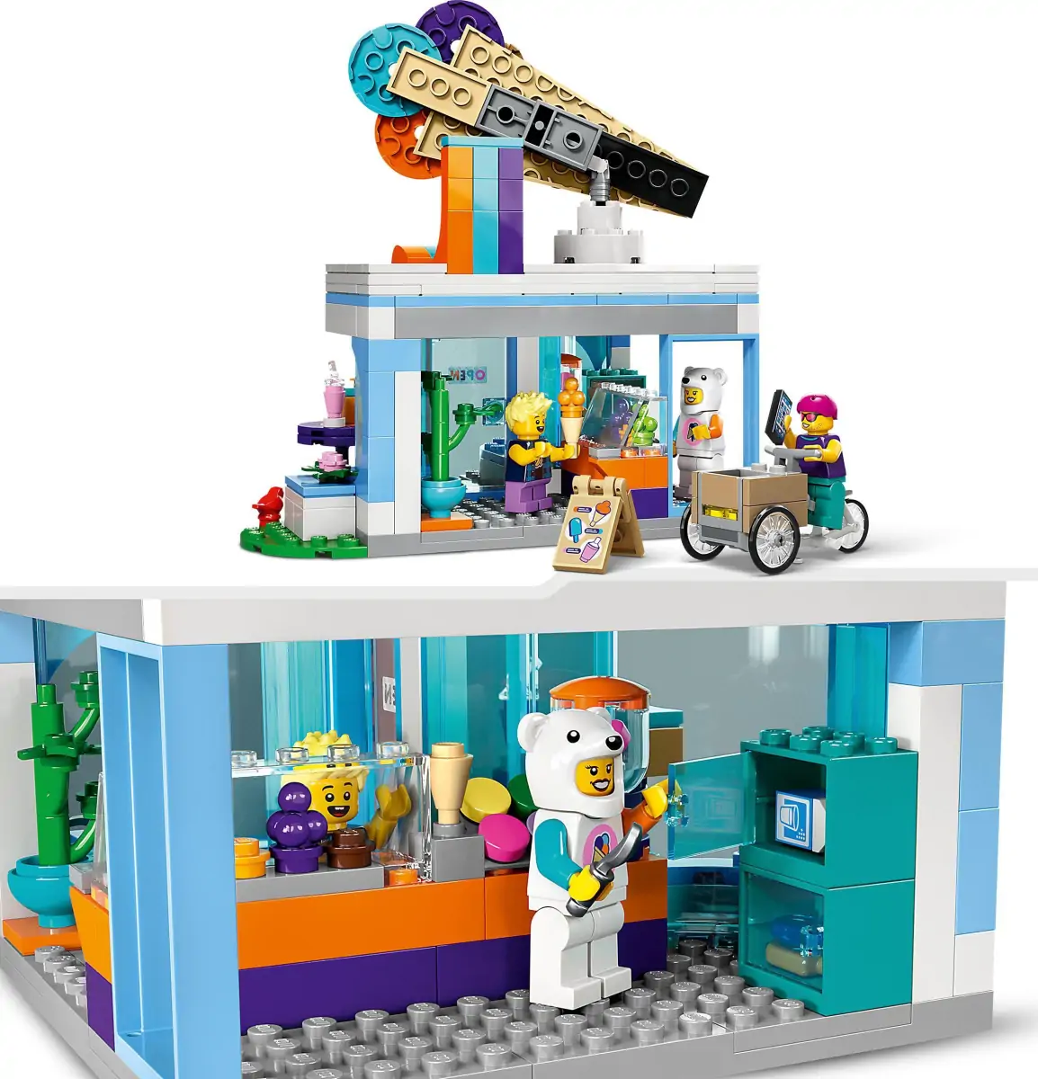 Giv legen et strejf af sommerstemning med LEGO® City sættet Ishus til børn fra 6 år. Fans af iskiosker og fester vil elske dette kvalitetslegetøj, der omfatter en isdisk, en blender, et køleskab og et udendørs siddeområde. Der er også en ladcykel og 3 minifigurer, bl.a. en ekspedient iført en sjov isbjørnedragt.
