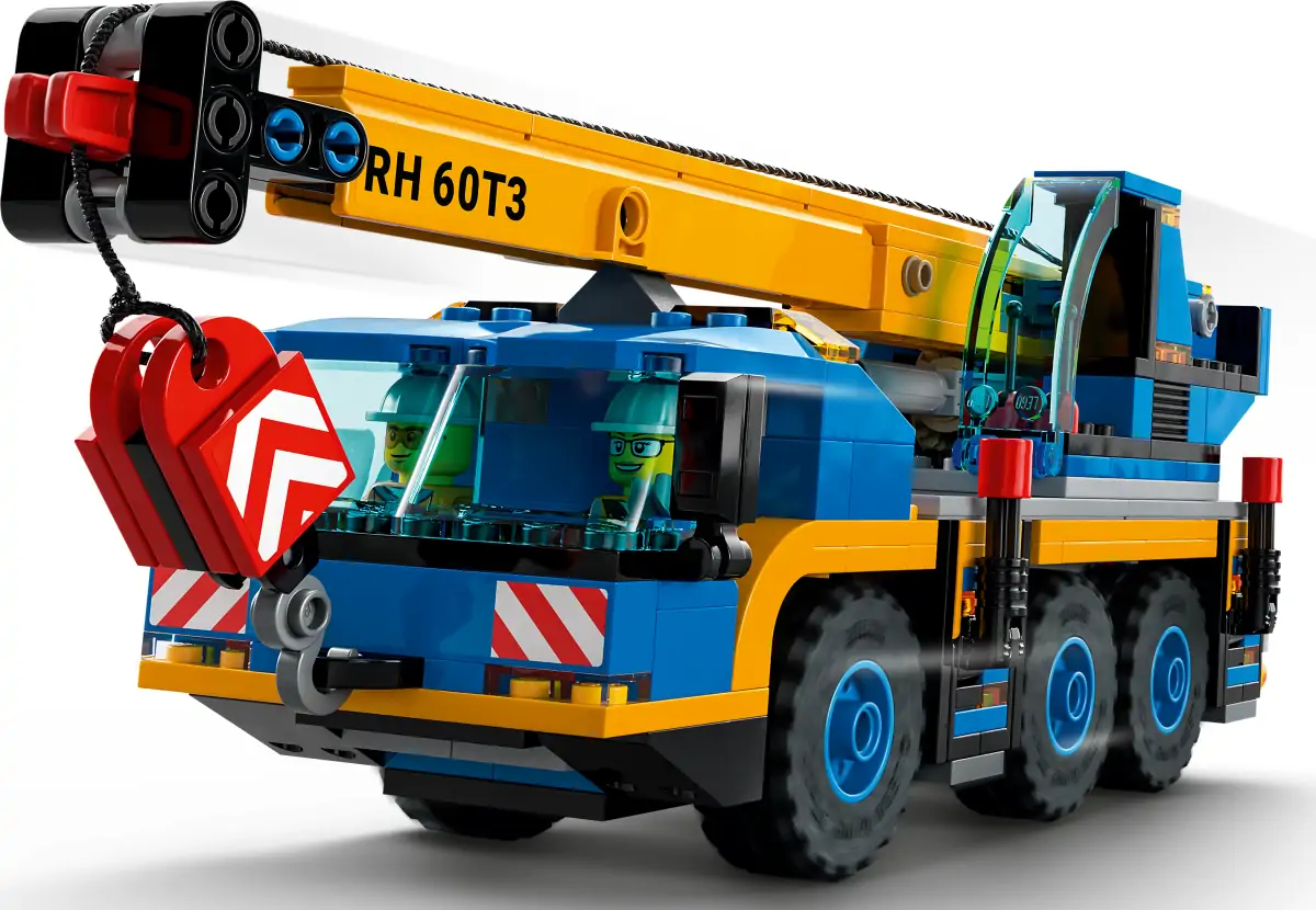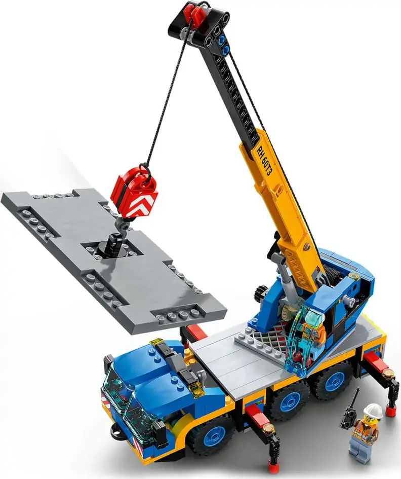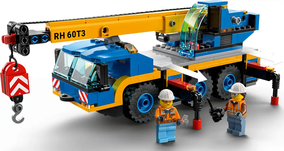 Her er et fantastisk legesæt til børn, der er fascinerede af entreprenørmaskiner. Den flotte LEGO® City Mobilkran er fyldt med autentiske detaljer og funktioner. Sænk støttebenene, drej og forlæng kranarmen, og hæv og sænk spillet. Bare tilføj minifigurerne af en kranfører og en kører for at få timevis af realistisk rolleleg. Der medfølger også en LEGO City vejplade.