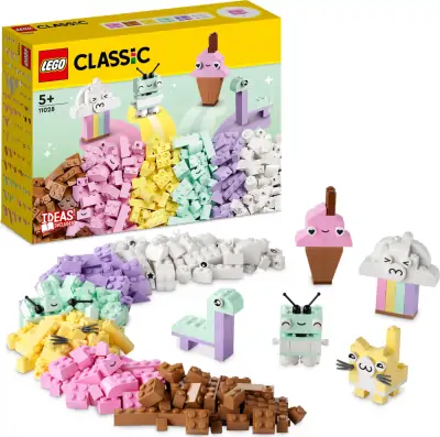 Inspirer spirende byggere fra 5 år med LEGO® Classic sættet Kreativt sjov med pastelfarver (11028). Med modeller, der er hurtige at bygge, og endeløst sjov med fribyggeri giver den iøjnefaldende blanding af klodser børn lyst til at udforske deres passion for kunst og design.