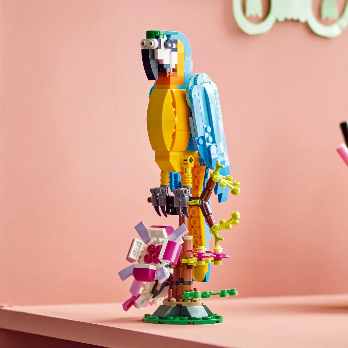 Små byggere og passionerede dyrefans fra 7 år kan rejse dybt ind i regnskoven og opleve actionfyldte historier med LEGO® Creator 3-i-1-byggesættet Eksotisk papegøje. Det omfatter en farverig papegøje, der kan dreje hele kroppen, mens den sidder på en gren og bevæger sine vinger og hale.