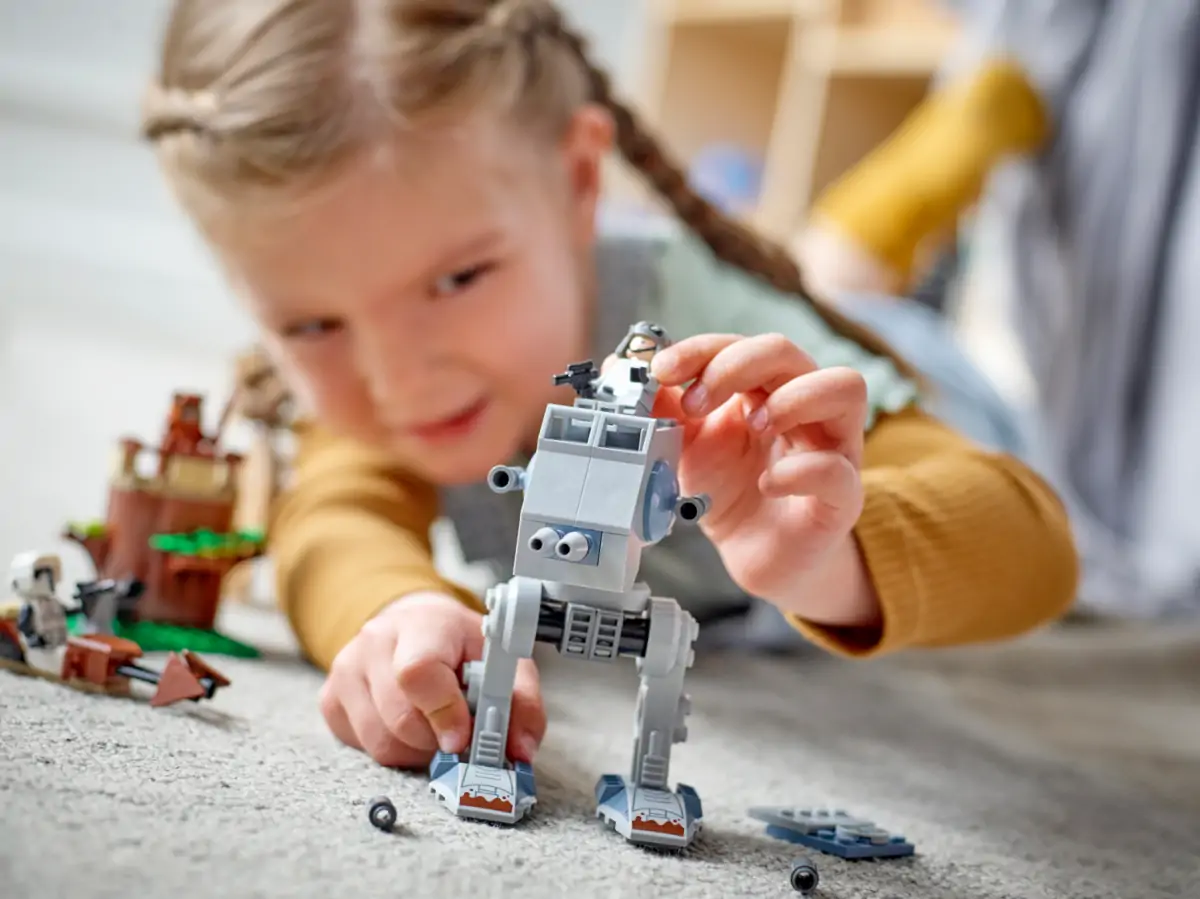 Børn kan genskabe dramatiske actionscener fra “Star Wars: Imperiet slår igen” med den første LEGO model nogensinde af en AT-ST fra slaget om Hoth. Den har en luge og tag, der kan åbnes og giver adgang til minifigurcockpittet, et hjulbetjent drejeligt hoved, 2 fjederbetjente skydere og justerbare ben. Dette byggelegetøj vil være en cool gave til trendsættende børn fra 9 år og indeholder også 3 LEGO Star Wars minifigurer, bl.a. Chewbacca med snemotiv samt en LEGO figur af en kejserlig spionsonde, der kan inspirere til kreativ leg.