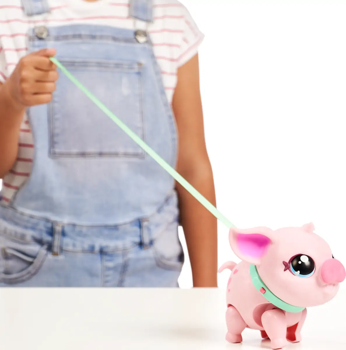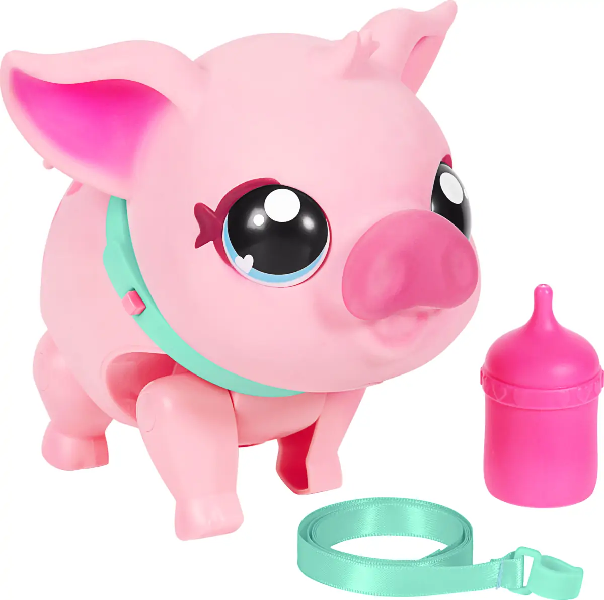 Giv Piggly snor på, og så er I klar til at udforske verden sammen! Efter en spændende gåtur, er Piggly træt, og du kan give hende mad med den medfølgende flaske. Så vil du helt sikkert få et ekstra nus af hende.