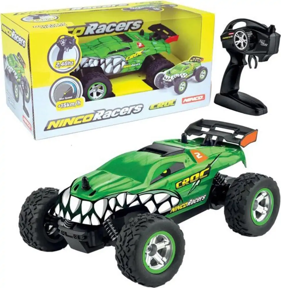 Croc+ radiobilen fra Ninco er et off-road køretøj med en længde på næsten 27 cm. Dette gør, at Croc+ klarer terrænkørsel bedre, da den også er udstyret med en beskyttende kofanger, bløde off-road dæk og støddæmpere. Croc+ kan opnå en fart på næsten 15 km/t og det er derfor en alsidig radiobil, der kan lidt af hvert. Bilen er lavet af slidstærkt og højkvalitets plastik i et flot grønt krokodilledesign.