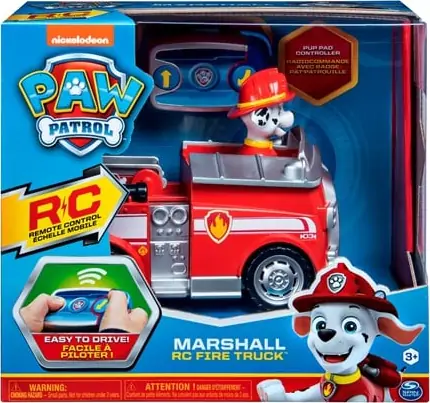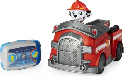 Med sin fjernstyrede brændbil kan Marshall hurtigt komme ud og slukke brande. Fjernbetjeningen med de to knapper gør brandbilen nem at styre.