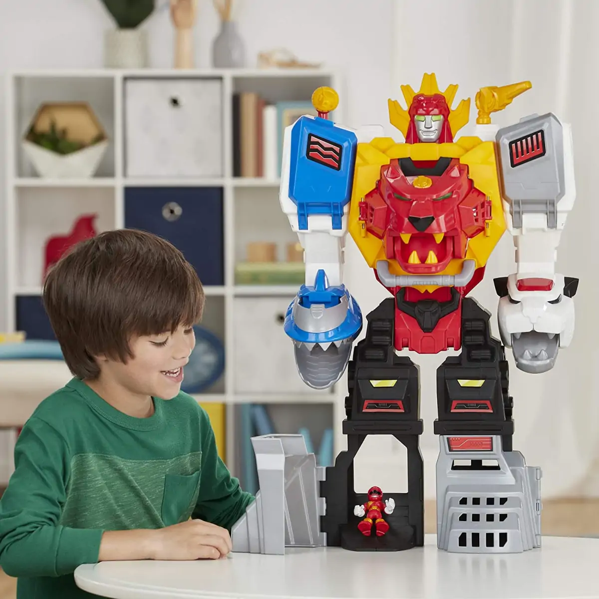 GO GO POWER RANGERS! Dette Playskool Heroes Power Rangers-legetøj er inspireret af tv-serien Power Rangers Wild Force og giver børn mulighed for at springe ind i handlingen sammen med Red Ranger og Megazord.