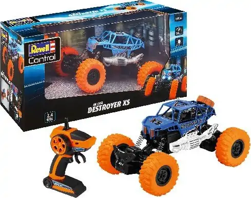 RC Crawler Destroyer XS er den perfekte fjernstyrede bil for begyndere! Modellen er nem at kontrollere og kan styres imponerende gennem terrænet med dens store dæk og præcise styretøj. Med 2,4 GHz fjernstyringsteknologien kan flere venner udforske terrænet sammen på samme tid. Med de smarte LED forlygter kan eventyret fortsætte, selv når det bliver mørkt!