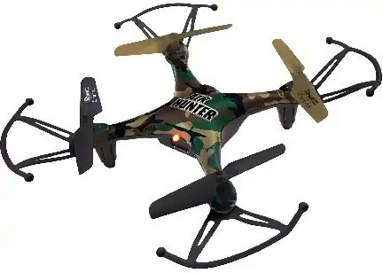 Hvis du er en stor fan af manøvredygtighed, hastighed og robusthed, så vil du elske Air Hunter! Den nye entry-level quadrocopter i camouflage-look har 3 hastighedsniveauer og en hovedløs tilstand for nem styring. Særligt sjov er Flip-funktionen til lodrette og vandrette flash-overs. Det indbyggede LiPo-batteri tankes nemt og bekvemt op via det medfølgende USB-opladerkabel, og den præcise 4CH GHz-fjernbetjening sikrer en kontrolleret flyvning. L (2x 1,5V AA-batterier påkrævet / ikke inkluderet)