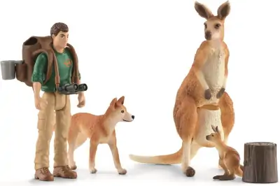 Snup din opdagelsesrygsæk: det australske vildnis venter forude! På Vildmarkseventyr fra schleich® WILD LIFE møder du vilde dyr fra et fjernt kontinent. Du finder dem ingen andre steder – måske bortset fra i din have! Kængurufamilien er meget nysgerrig og vil straks drikke af dit vandglas. Men kun hvis vandet er helt frisk. Og den vilde dingo er din bedste ven efter præcis 0,02 sekunder. Han kan allerede lugte, at I passer perfekt sammen. Han kan godt være lidt genert i starten, men du finder ham nemt med din kikkert, selvom han er langt væk mellem havemøblerne. Og du kan se ham spise sin middag. Eller er det dine lektier, han tygger på?
