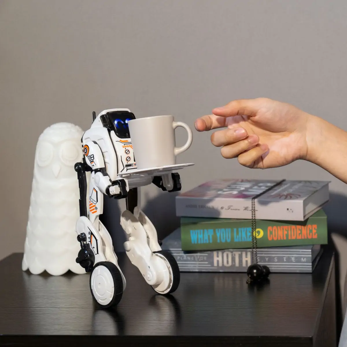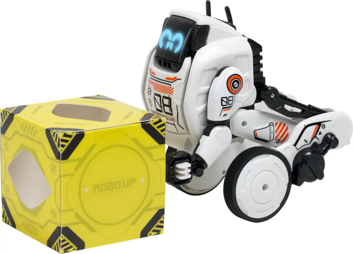 Denne 27 cm høje robot ‘Robo Up’ fra Silverlit kan løfte og bære last. Du kan programmere op til 50 kommandoer til robotten, og ved at trykke på en knap, så gør robotten hvad du beder den om.