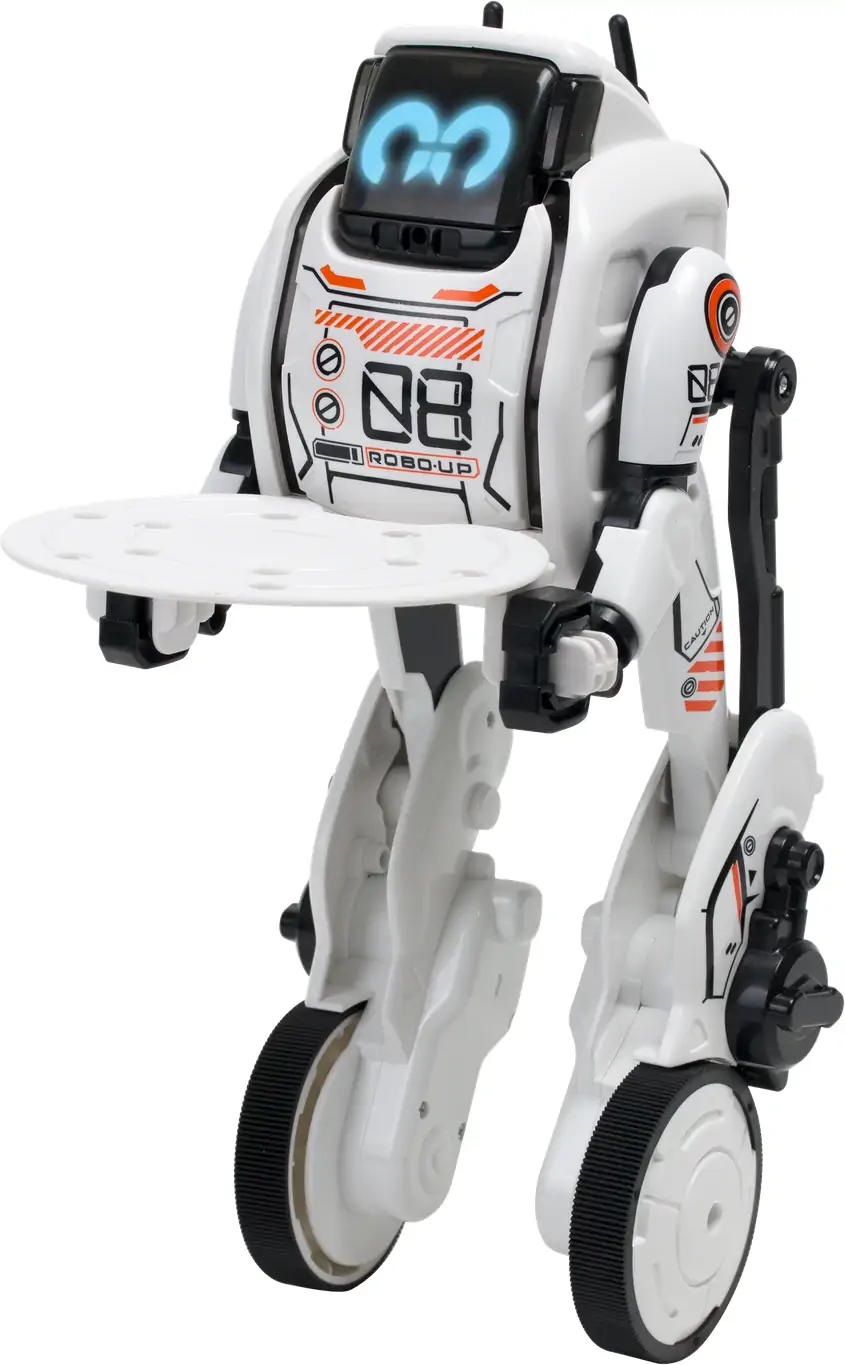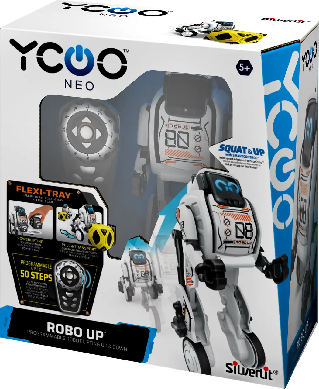 Den kan blandt andet rejse sig op, sætte sig ned og komme forbi udfordringer. Robo Up kommer med LED-øjne og SFX lyd.