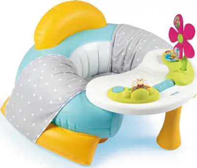 Skøn aktivitetsstol til babyer fra legetøjsproducenten Smoby. Stolen består af et behageligt oppusteligt sæde med stofpude til babyer, der ønsker at sidde og udforske.