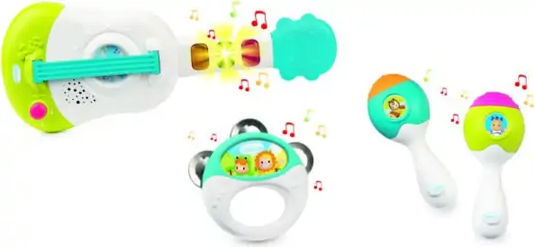 Lav børneværelset om til musiklokale, og lad den lille få fingrene i disse spændende musikinstrumenter. Der er både ukulele, tamburin og maracas, som alle er helt perfekt formede til små, buttede hænder – de vil helt sikkert være et hit for mini-musikeren.