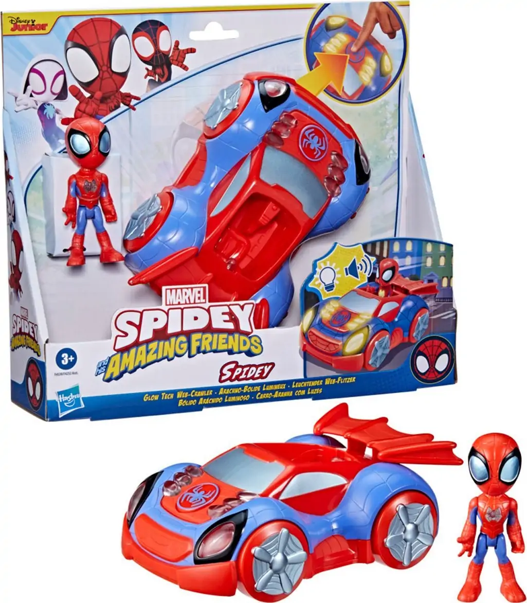 Bilen har fede lys- og lydeffekter, der gør legen endnu sjovere. Placér Spider-Man i sædet og figuren samt bilen vil lyse op.