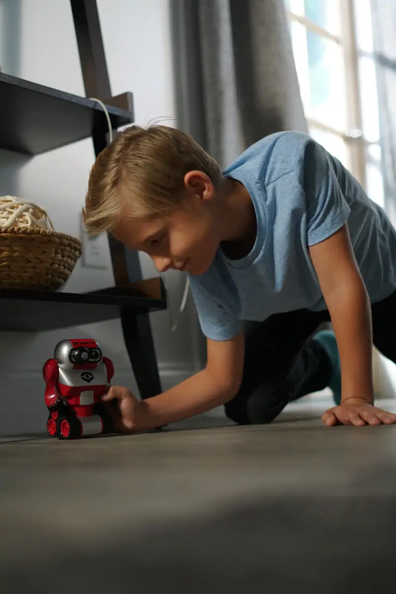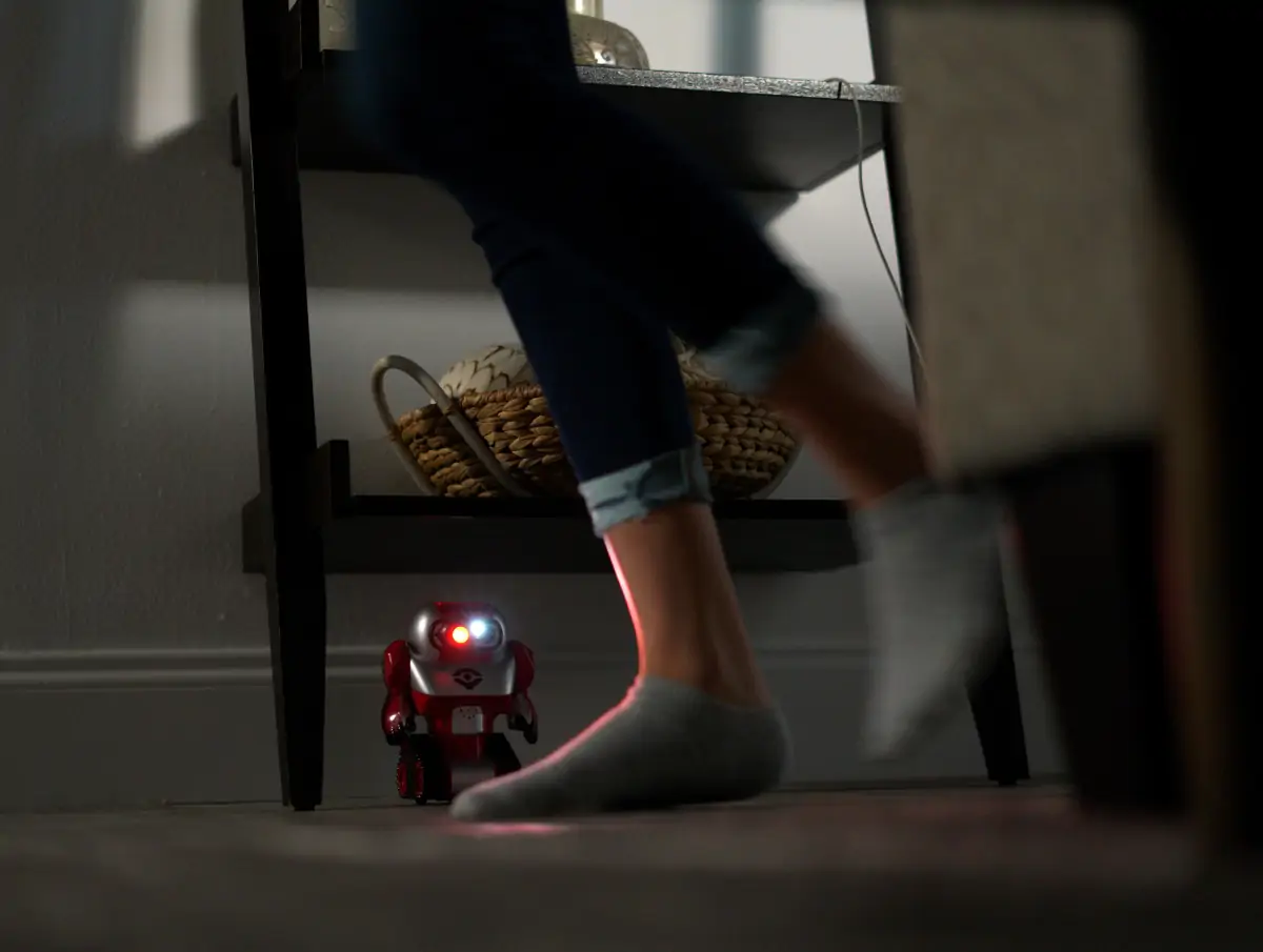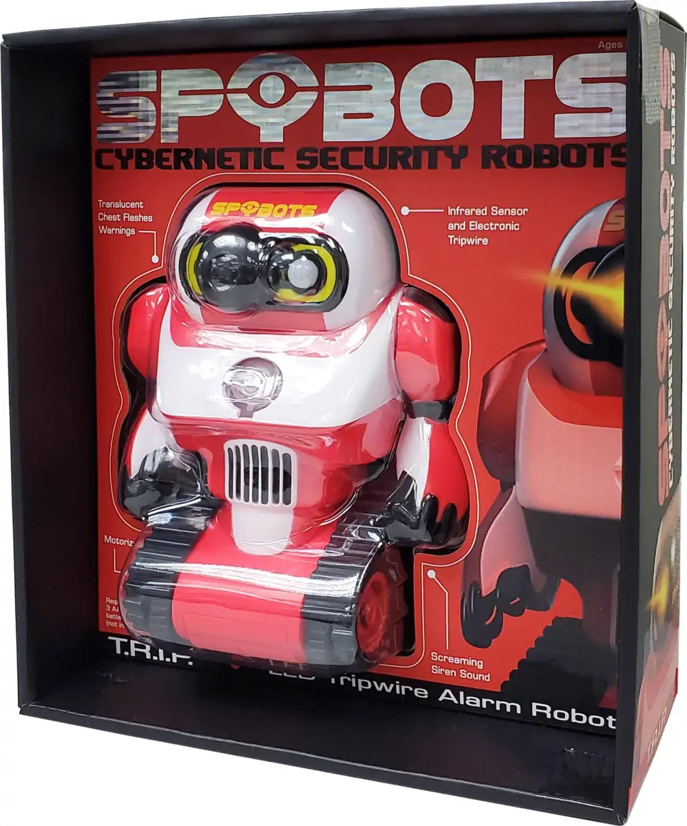 Ubudne gæster, ingen adgang! Du ved, at du kan føle dig sikker, når du har SpyBots’ T.R.I.P ved din side. Denne kraftfulde robot er nemlig udstyret med LED-lys og hvis en ubuden gæst skulle krydse hans vej, vil han advare dig med en høj alarm og blinkende lys. For at være på den sikre side, så begynder robotten også at jage den ubudne gæst! Robotten projicerer endda sit eget logo op på jævne overflader for at skræmme de ubudne gæster!