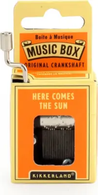 Oplev den gammeldags charme ved en original håndsvings musikboks! Blot drej på metalhåndtaget for at spille den søde melodi af Beatles-klassikeren “Here Comes the Sun”. Prøv den på træ, glas eller andre forskellige overflader for at opnå en ny lyd.