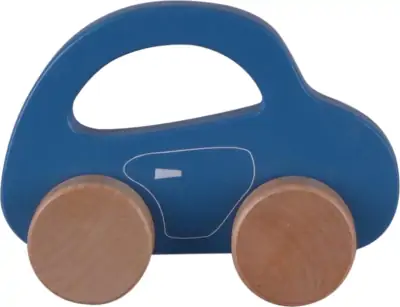 Denne fine blå træbil er lavet i et simpelt men yndigt design i en rolig blå farve, der vil tiltale ethvert barnehjerte. Den lille blå bil er både superfin at se på, men bidrager til leg og god motorik. Bilen har funktionelle hjul og store vinduer, som gør det nemt for de små hænder at gribe om bilen. Bilen er designet med runde kanter og har en dejlig glat overflade, som gør den blød og behagelig at røre ved for barnet.