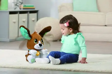 Den søde og bløde Tal & Lær hundehvalp fra Vtech Baby er den bedste legetøjsven, som kan lære barnet forskellige bogstaver og tal, og I kan også lytte til sjove sange og musik sammen med dens i alt mere and 200 sange, ord og sætninger og 3 forskellige læringsniveauer.